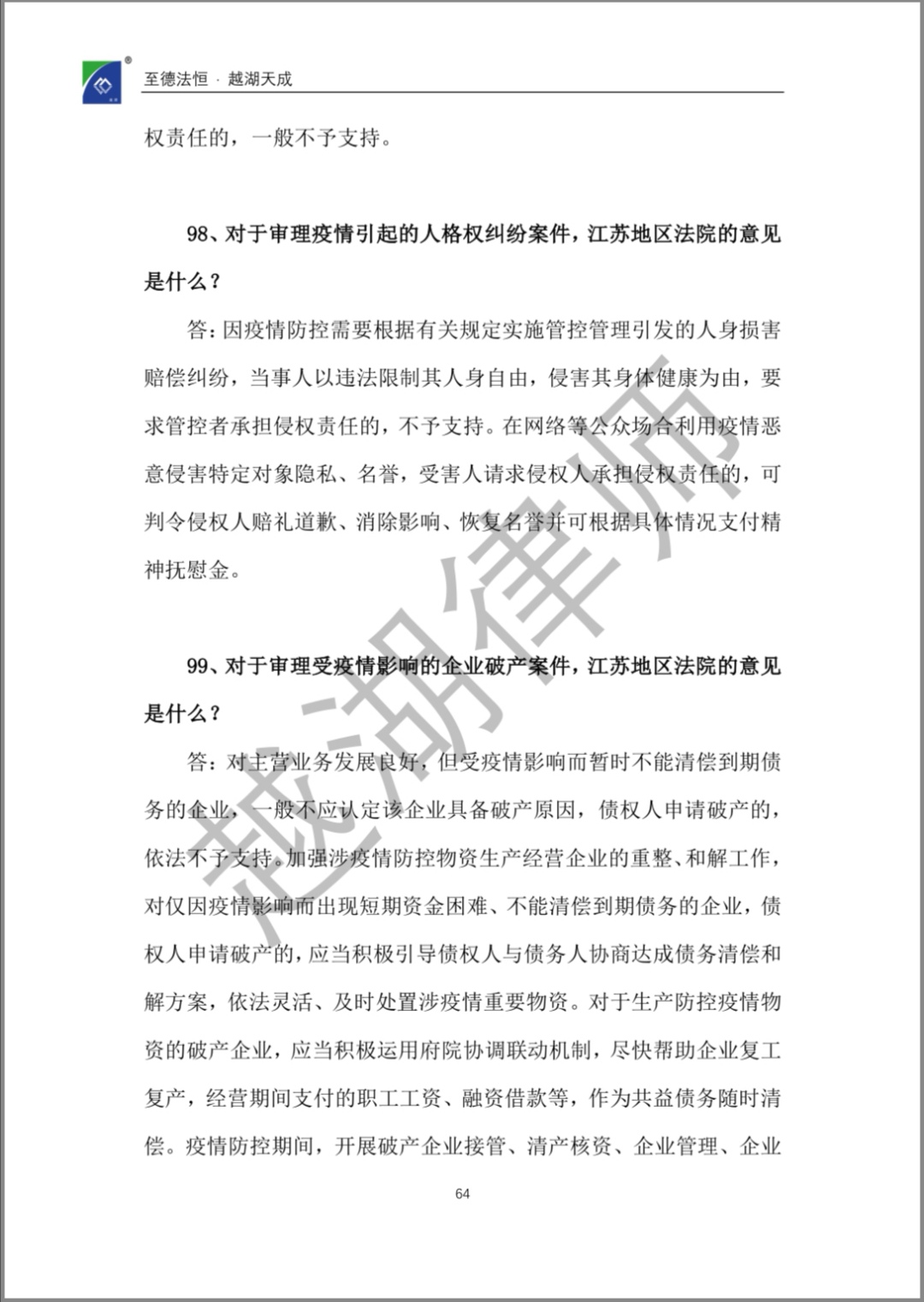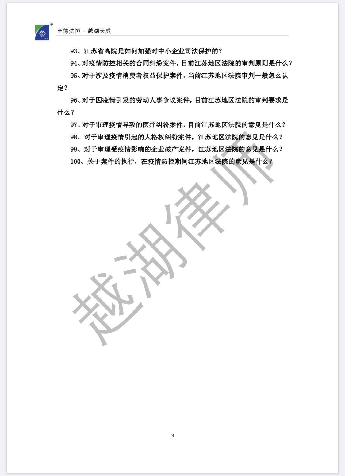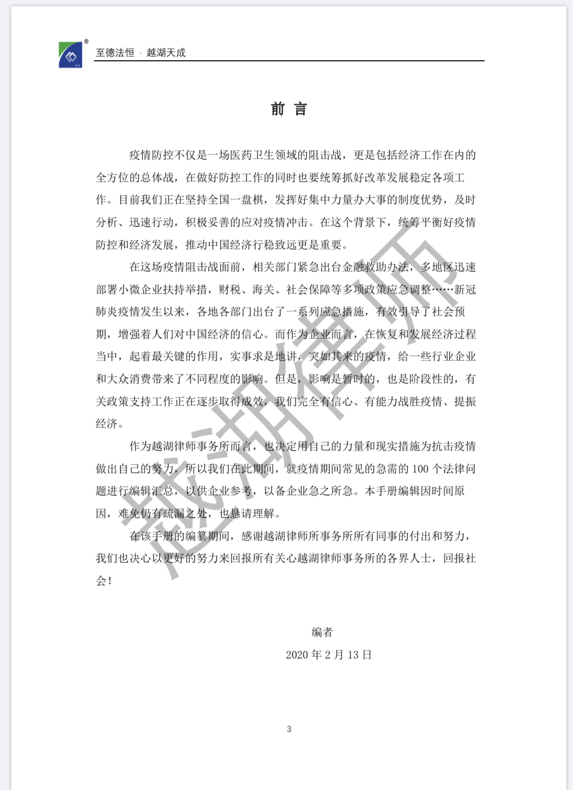 【企业“抗疫”宝典】《越湖100问:新冠肺炎疫情防控背景下企业常见法律问题实用指南》今日发布