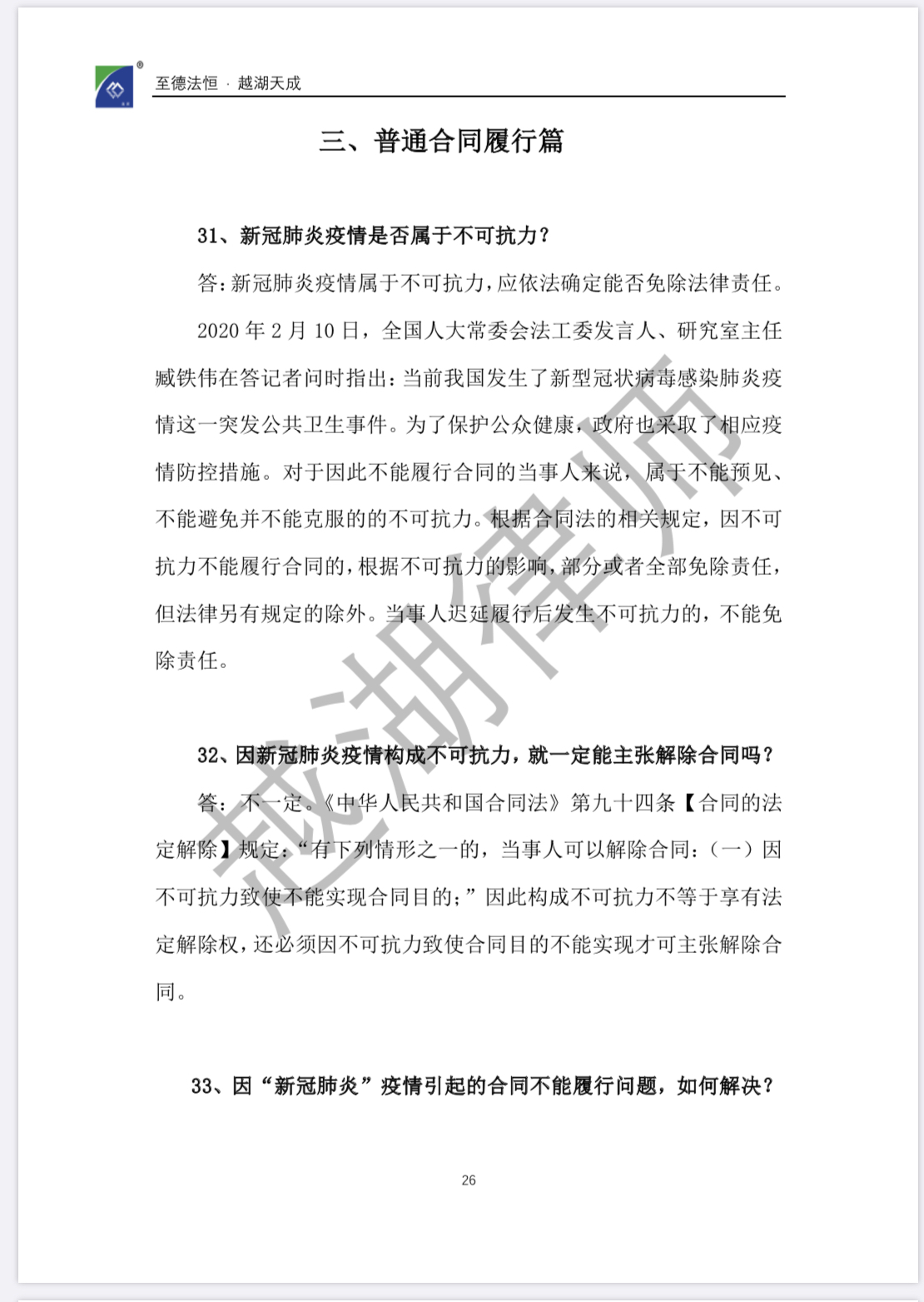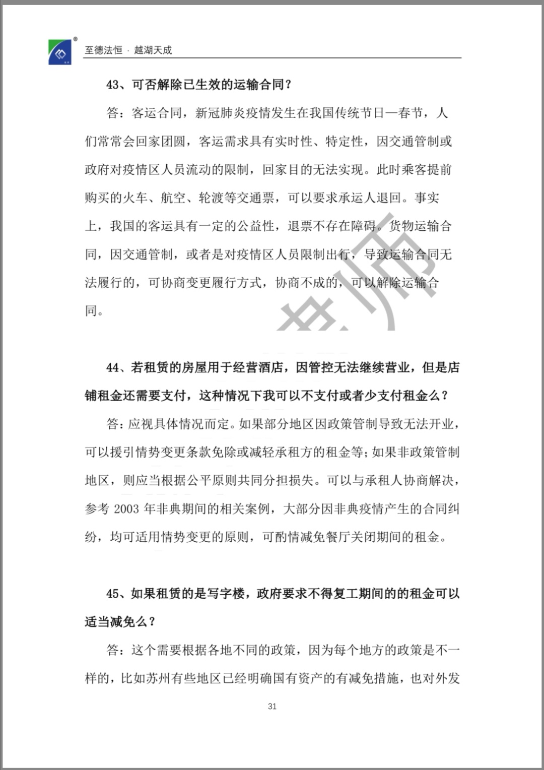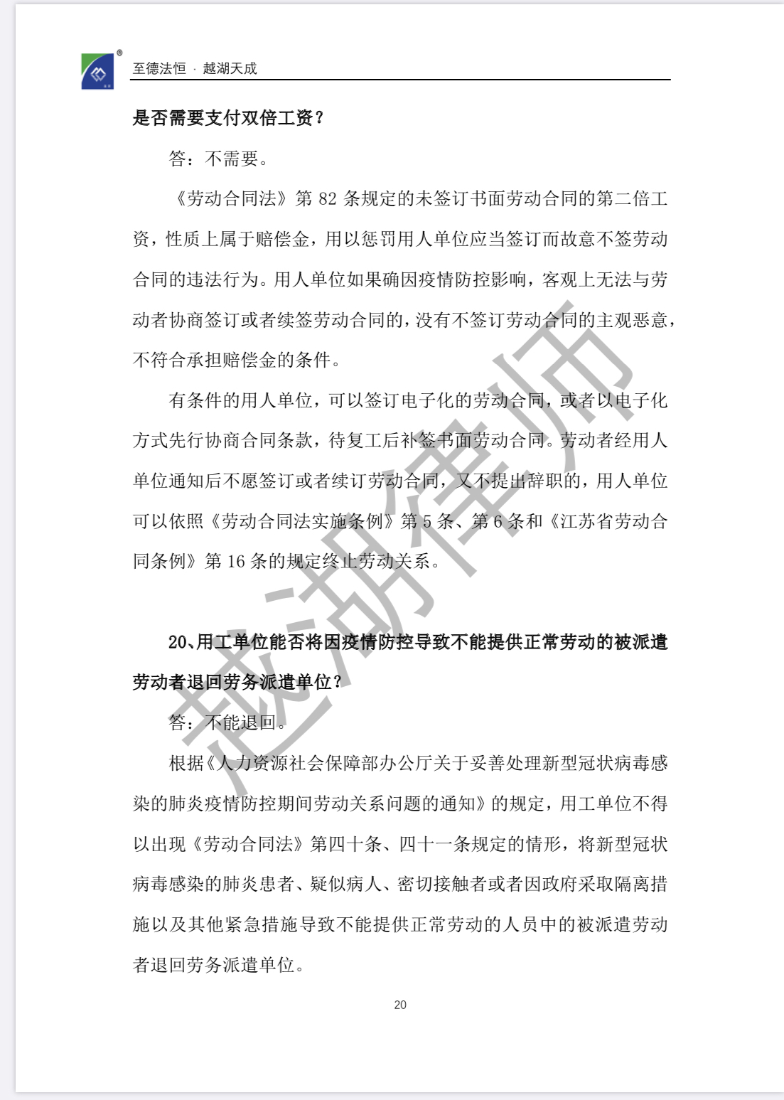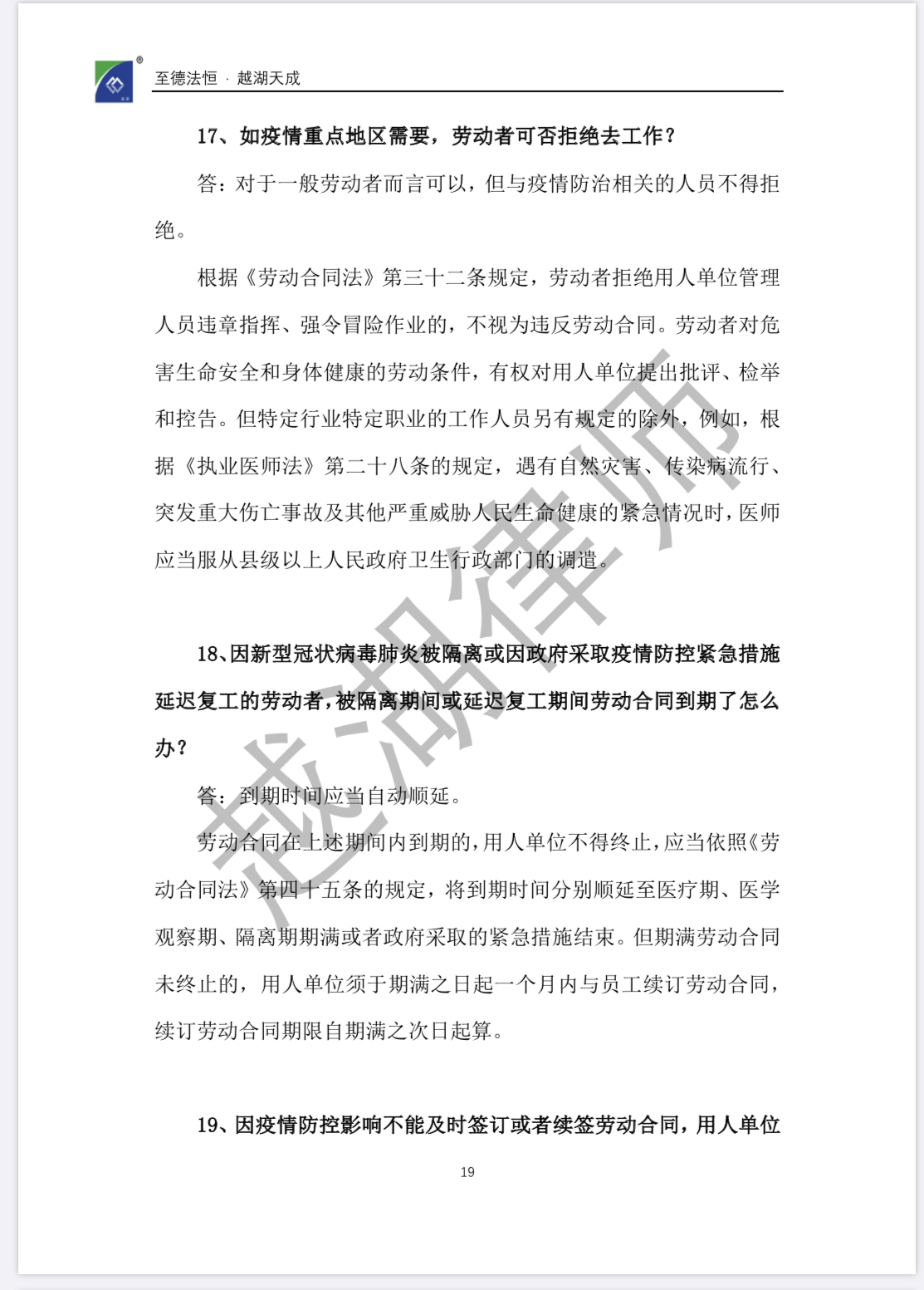 【企业“抗疫”宝典】《越湖100问:新冠肺炎疫情防控背景下企业常见法律问题实用指南》今日发布