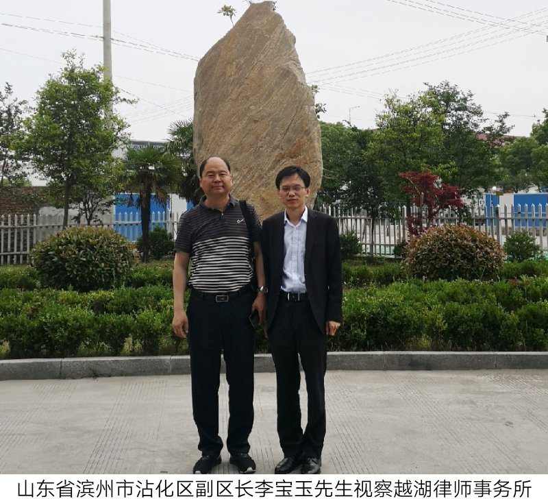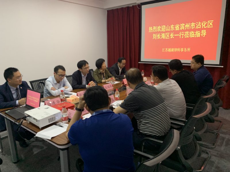 5月17日,山东省滨州市沾化区区长刘长海一行到越湖律师事务所视察指导工作,沾化区副区长李宝玉、区政府办主任都风中、区教育体育局局长丁明新、富国街道办事处党工委书记韩振岚等同志一同视察,越湖律师事务所简连华主任等参加专题座谈会。
