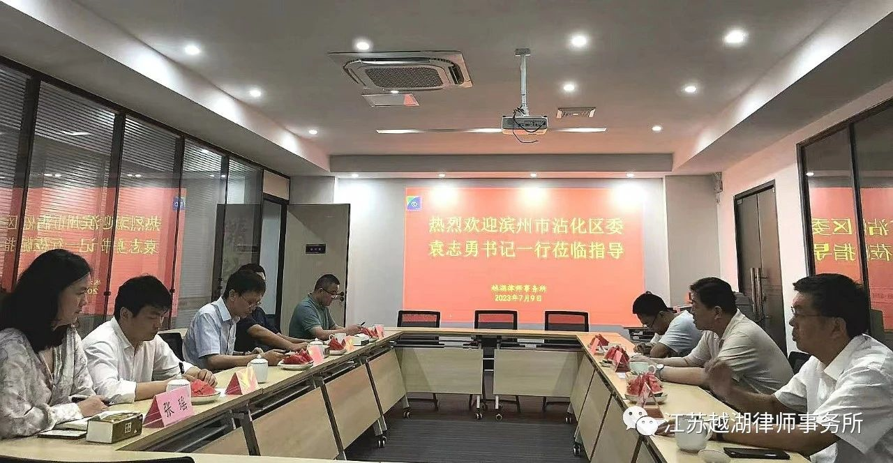 7月9日,山东省滨州市沾化区委袁志勇书记一行到越湖律师事务所视察指导工作。沾化区委常委、区委办李云涛主任等同志一同视察。