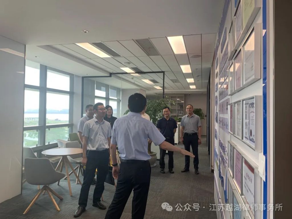 8月29日,苏州市吴中区司法局王钦局长、王永春副局长与张欢副局长到越湖律师事务所走访调研,吴中区律师协会徐军会长、王炳玉副会长与陈俊凤秘书长陪同参加。