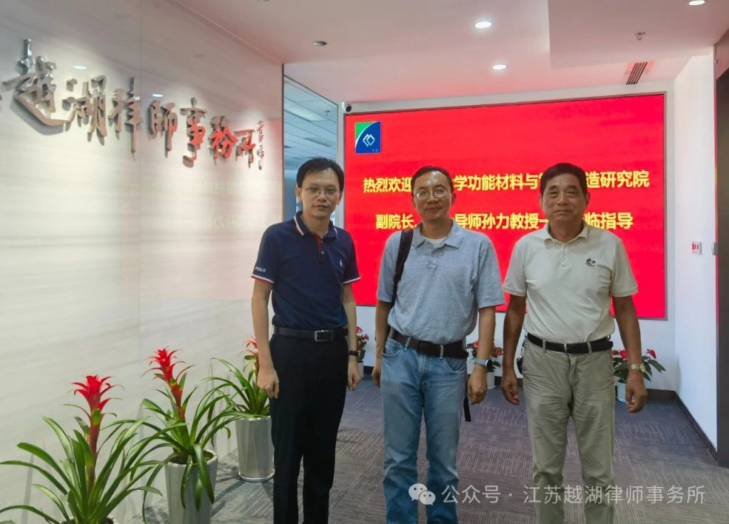 7月21日,南京大学功能材料与智能制造研究院副院长、博士生导师孙力教授一行走访越湖律师事务所。