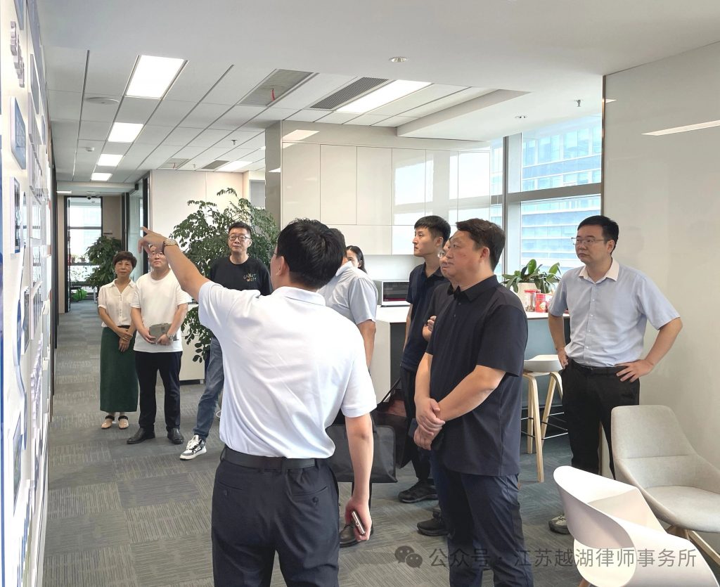 9月14日,山东省无棣县张立波县长、县政府办公室牛云才主任、商务局金才局长等一行到越湖律师事务所走访调研。吴中太湖新城管委会副主任林毅君、越湖律师事务所主任边瑞鹏与执行主任简连华等陪同。