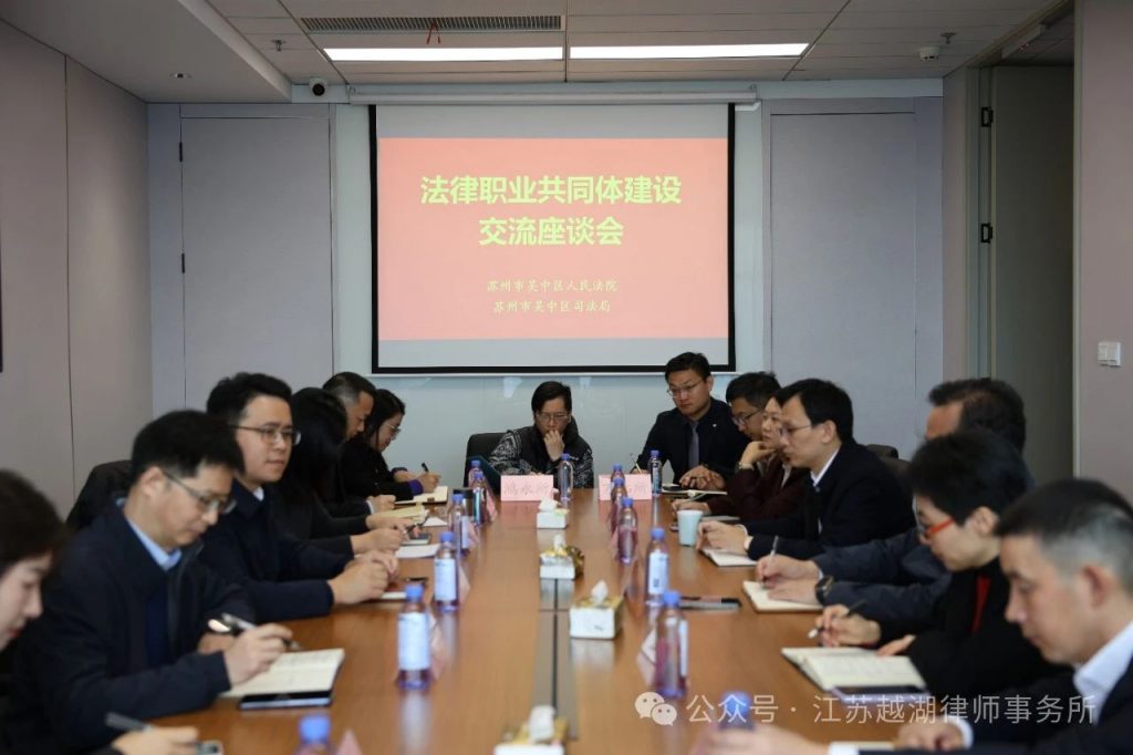 12月6日上午,苏州市吴中区人民法院党组书记、代院长高小刚一行走访越湖律师事务所,并在越湖律师事务所召开法律职业共同体建设交流座谈会,听取律师代表对法院工作的意见建议,共同推进法律职业共同体建设。区司法局副局长张欢主持座谈,区法院审判委员会专职委员徐澄、区律师协会会长徐军、法院相关部门负责人及律师代表参加座谈。