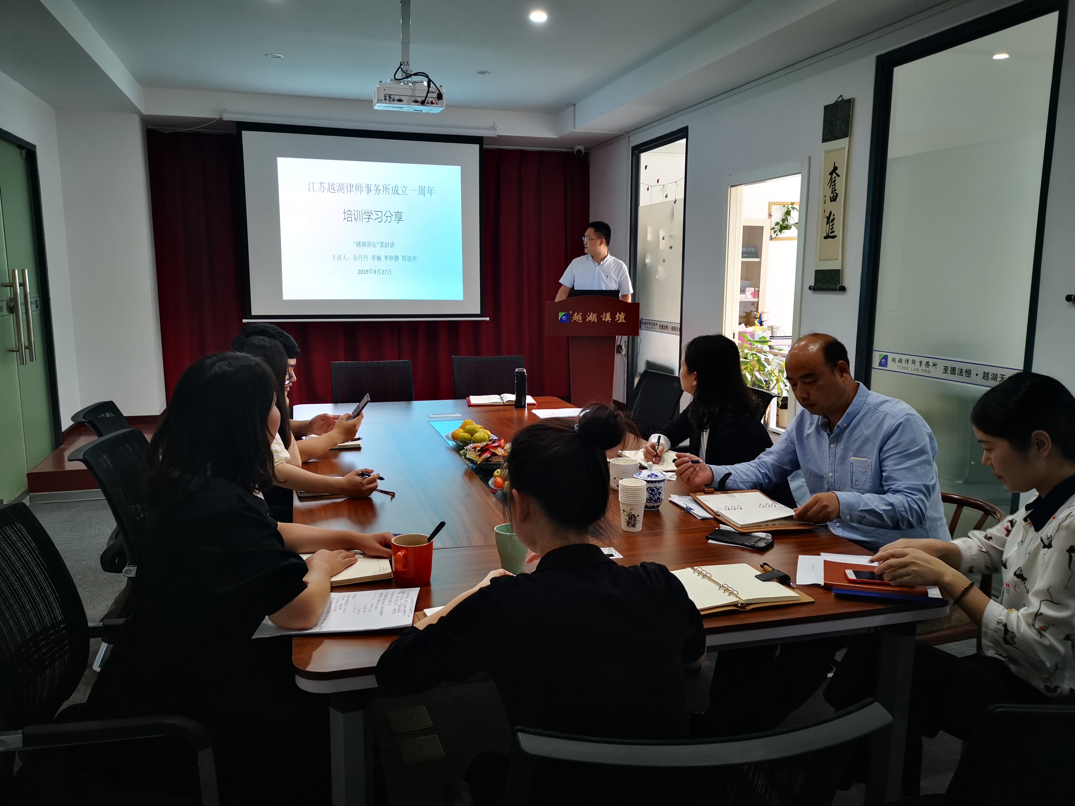活动的第一项议程“越湖讲坛”第37讲——培训学习分享会议,由简连华主任主持,岳丹丹实习律师、李楠律师、李妍静律师、简连华律师共同作交流发言,与大家分享他们在近2个月来参加培训讲座等学习活动时的心得体会。