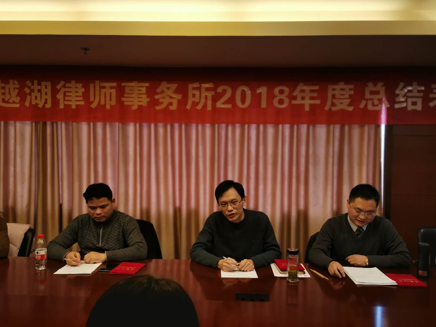 仲崇生主任对越湖律师事务所年度数据进行发布,在保证案件质量基础上,办案总量、标的额度、业务创收等方面均取得了较好成绩,研究型和专业型律师事务所建设取得效果。