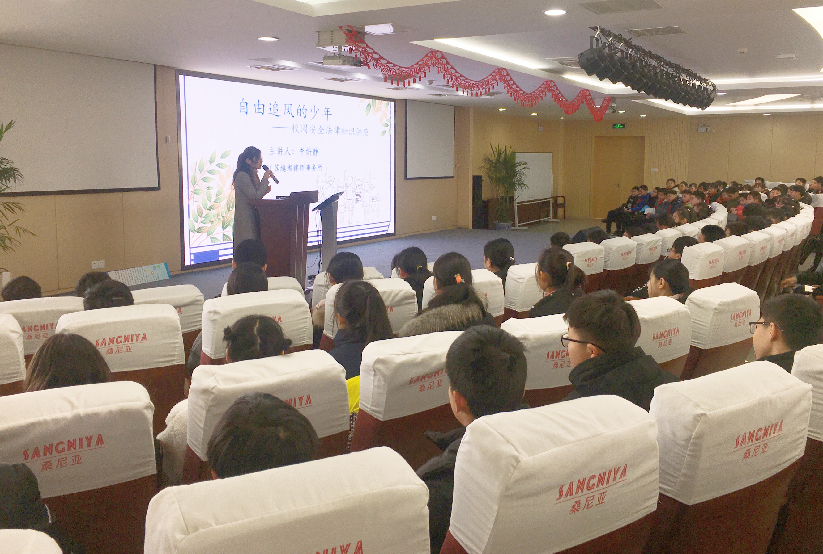 在中学生们临放寒假之际,江苏越湖律师事务所受苏州市石湖中学的邀请,为其在校初一、初二近千名学生举办一次校园普法宣传讲座。2020年1月13日、14日,江苏越湖律师事务所李妍静律师在苏州市石湖中学大礼堂分别为其初一、初二的学生举办了主题为《自由追风的少年之校园安全法律知识讲座》的法律大讲堂,本次讲座将会作为石湖中学“安全校园”系列讲座的开篇,后续还会为苏州市石湖中学的师生带去更多法律知识及普法宣传。