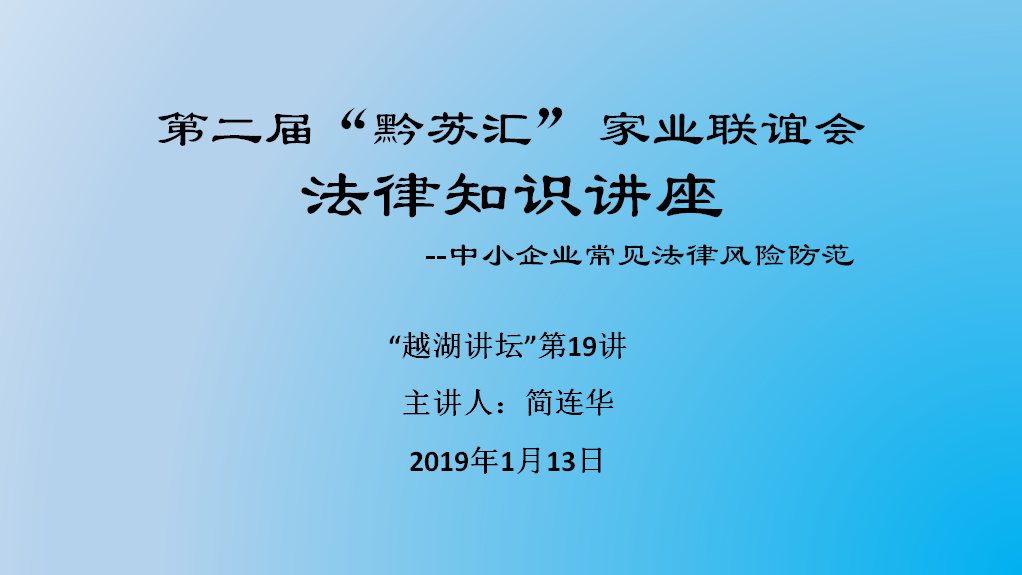 1月13日,我所简连华律师在第二届“黔苏会”家业联谊会上为近100名企业负责人开 ...详情