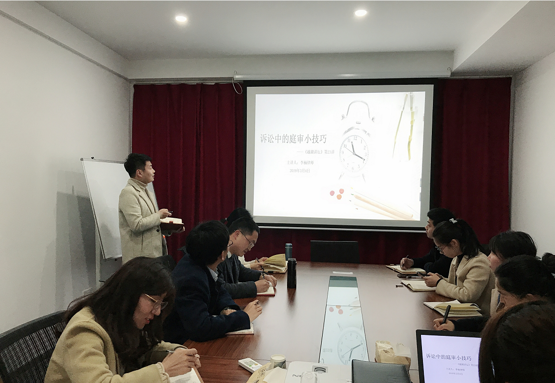 2019年3月4日,我所李楠律师在越湖律师事务所开展“诉讼中的庭审小技巧”为主题 ...详情